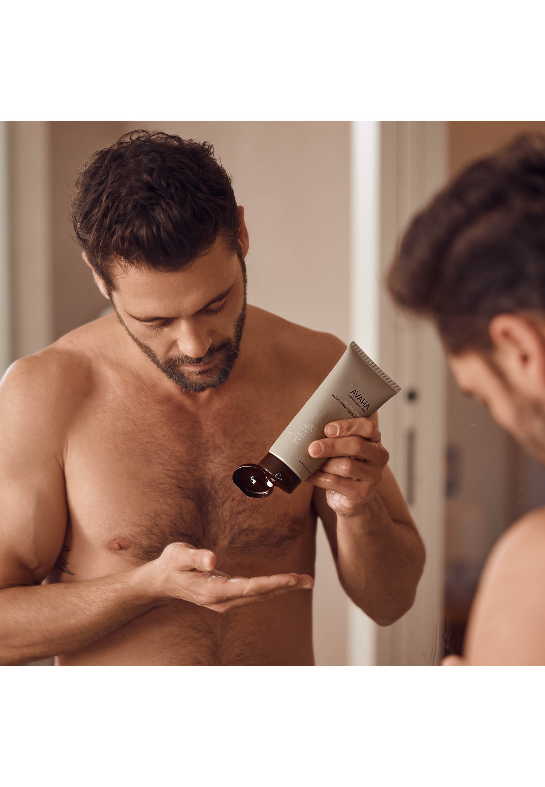 Die AHAVA Foam Free Shaving Cream für eine gleichmäßige Rasur auf die nasse Haut auftragen.
