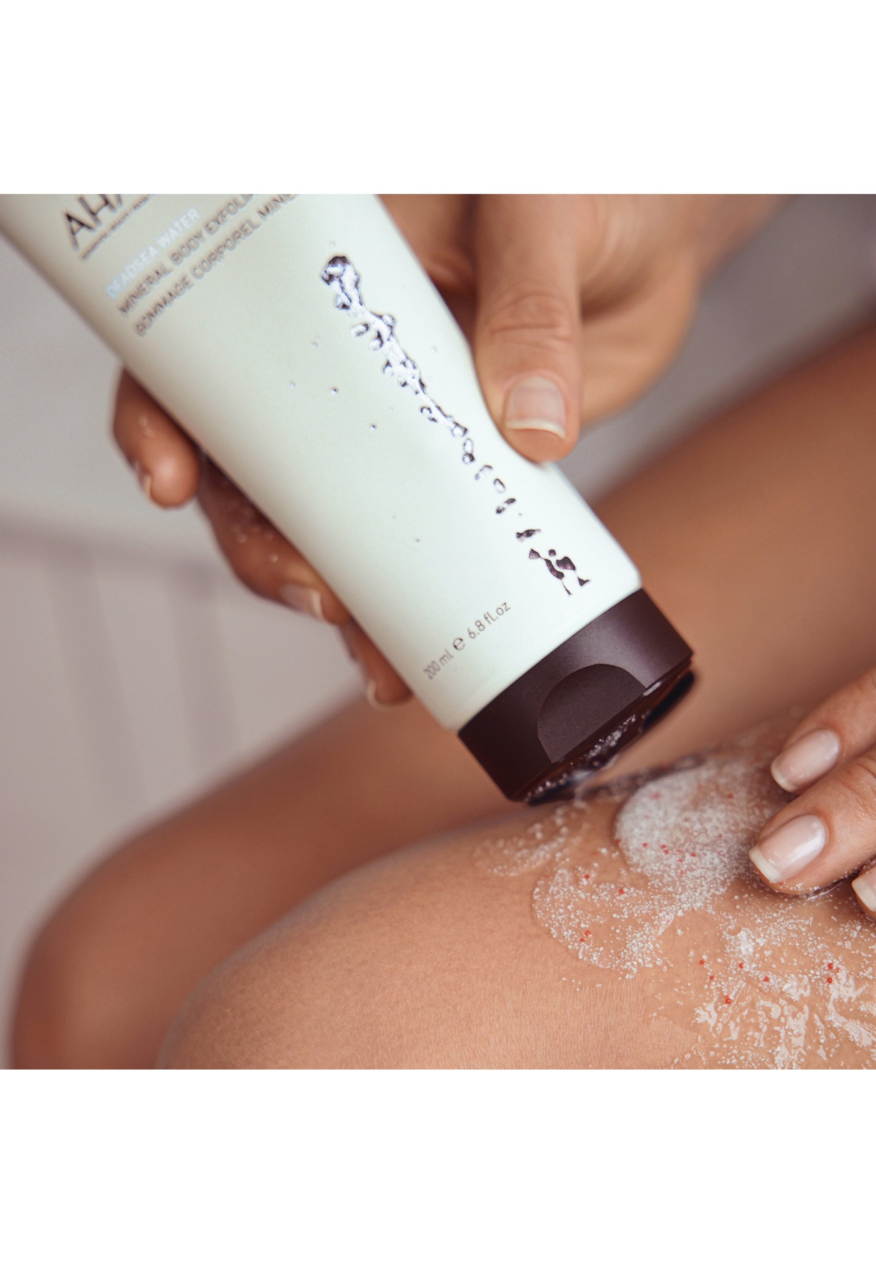Der AHAVA Mineral Body Exfoliator ist ein 2-in-1-Reinigungs- und Peeling-Gel. Mit natürlich gewonnenen Granulaten aus Algen und Pflanzen peelt es die Haut und reinigt sie gleichzeitig. Seine Textur ist für die tägliche Anwendung geeignet, glättet die Haut und verbessert die Fähigkeit des Körpers, Feuchtigkeit zu binden. Parabenfrei, SLS/SLES-frei, Allergiegetestet, Für empfindliche Haut geeignet. Vegan, frei von tierischen Inhaltsstoffen. Hergestellt ohne Mineralöl, Mikroplastik, harsche synthetische Inhaltsstoffe oder GMOs