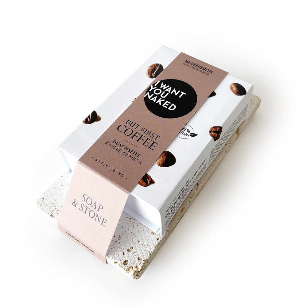 I want you naked SOAP & STONE Naked Stone mit Duschseife BUT FIRST COFFEE