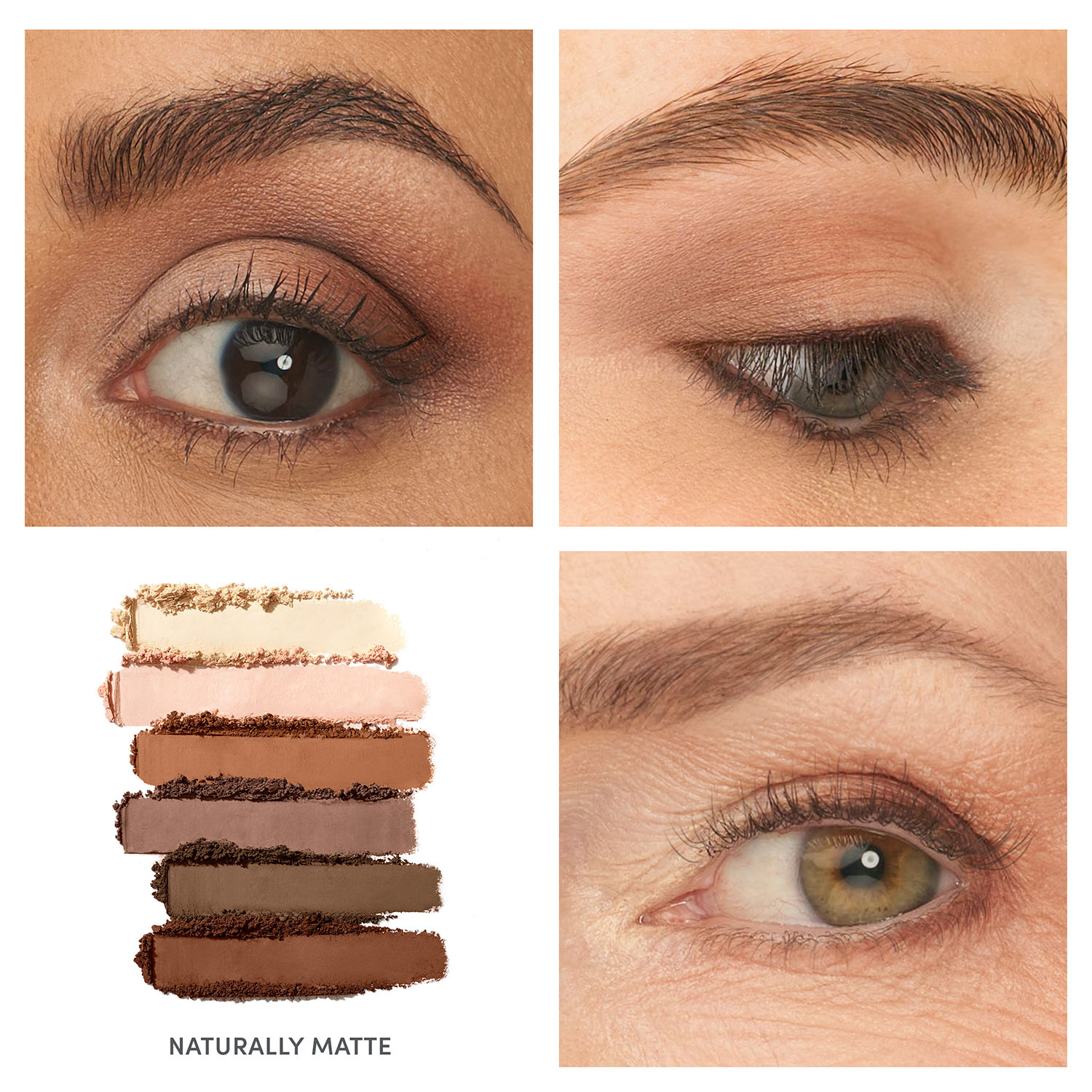 Das Naturally Matte Eye Shadow Kit bietet sechs matte Lidschattenfarben, die einzeln für sich strahlen, sich aber auch wunderbar kombinieren lassen. Der hautfarbene Basisfarbton wird ergänzt um weitere intensivere Farben: