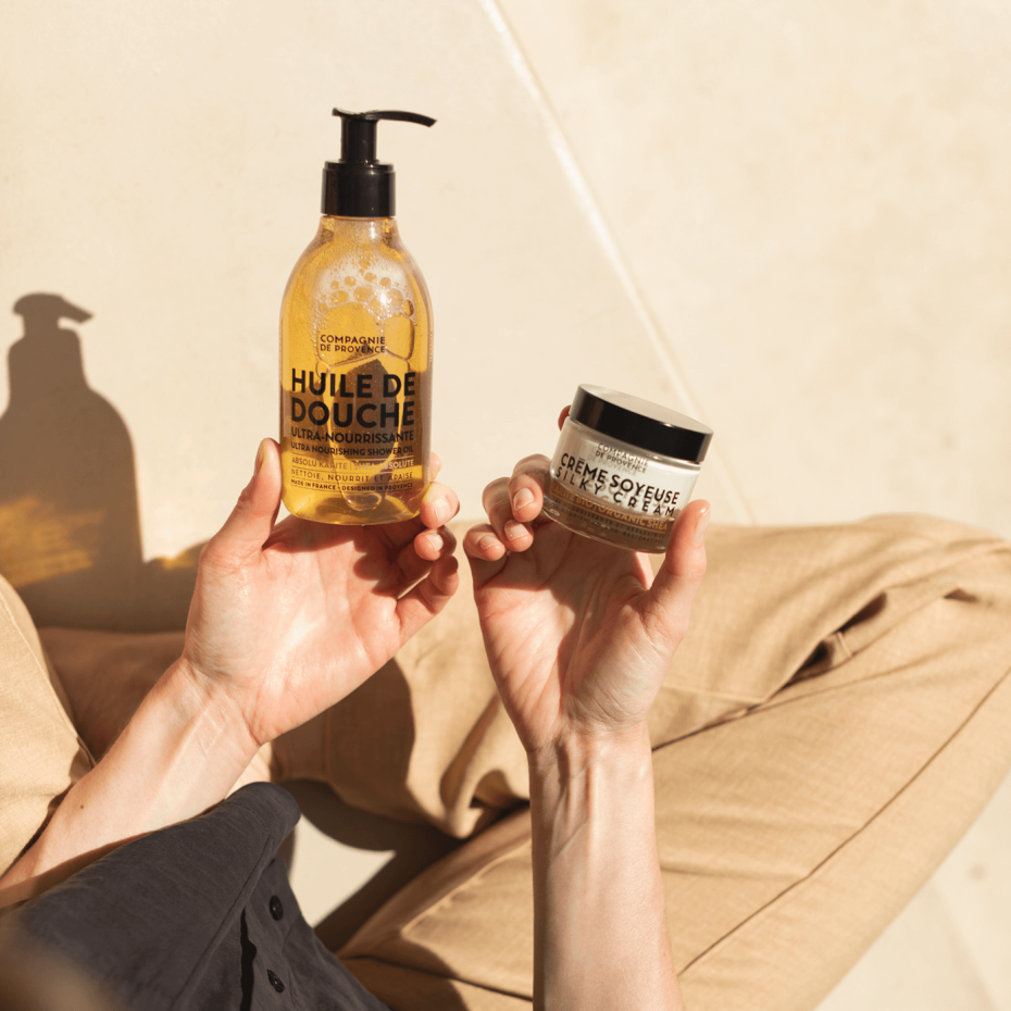 Angereichert mit Shea Absolute und drei außergewöhnlichen botanischen Ölen, reinigt und pflegt dieses Duschöl sehr trockene und empfindliche Haut. Hergestellt im Herzen der Provence, enthält es sanfte, pflanzliche Tenside, so dass es sowohl für das Gesicht als auch für den Körper verwendet werden kann. Shea Absolute hat nährende Eigenschaften und ist reich an rückfettenden Wirkstoffen. Kombiniert mit einem kostbaren Trio botanischer Öle aus der Provence umhüllt es die Haut mit einem wohltuenden Schaum und hinterlässt sie sauber, gepflegt und himmlisch duftend. 95 % Inhaltsstoffe natürlichen Ursprungs