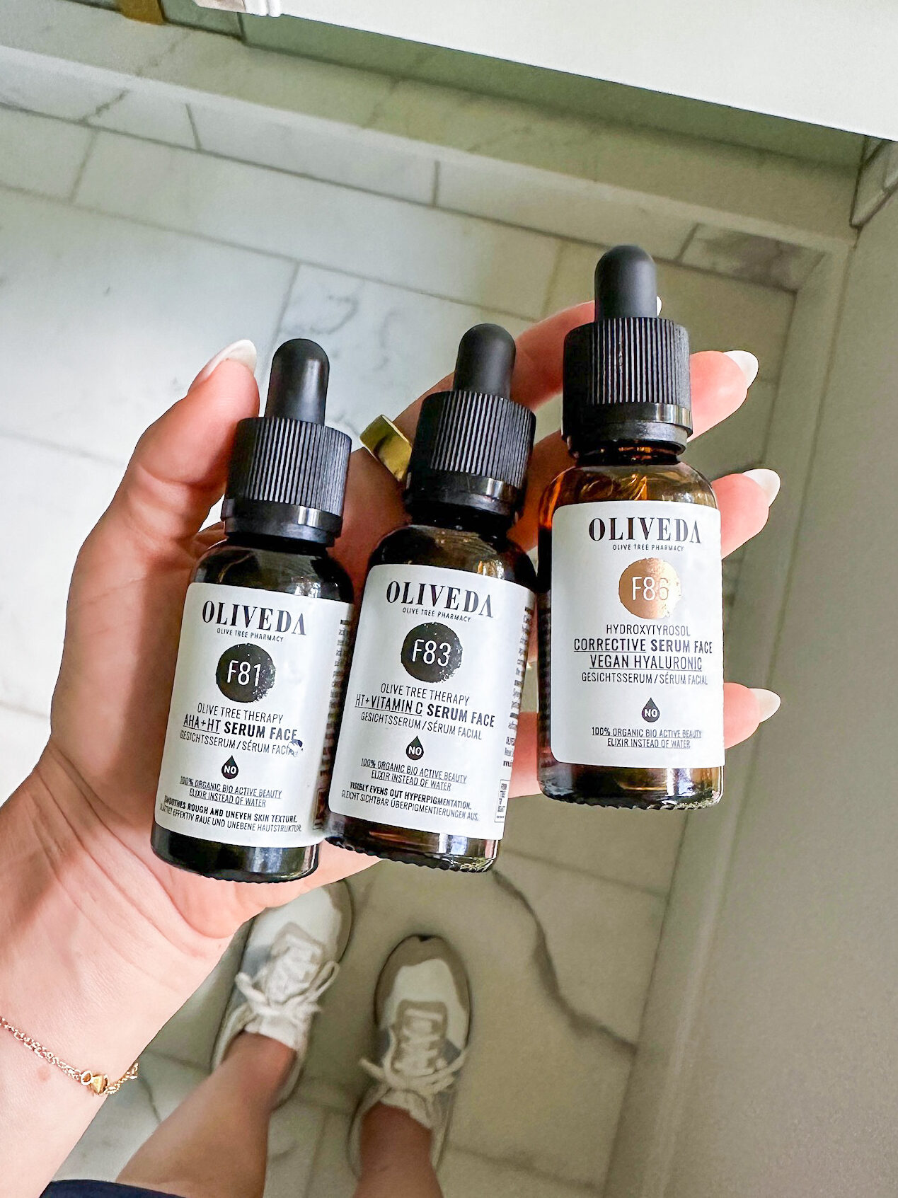 Das OLIVEDA Eye Elixir Corrective basiert auf einer dreifach-Hyaluronsäure, die das einzigartige Hydroxytyrosol aus dem Bergolivenbaum mit dem Jambuextrakt der Parakresse und Panthenol verbindet. Dieser exklusive OLIVEDA- Wirkstoffkomplex fördert die natürliche Aktivität der Zellen und verleiht so der Augenpartie ein strafferes und strahlenderes Aussehen. Dabei stärkt und glättet er die feine Haut der Augenpartie und eignet sich besonders für die anspruchvolle, empfindlich feine Haut. Die Augenpartie erscheint verjüngt, gestrafft und zeitlos schön. Vor dem Gebrauch schütteln. Tragen Sie einen Tropfen des Elixiers auf und massieren Sie diesen sanft um die Augenpartie ein.