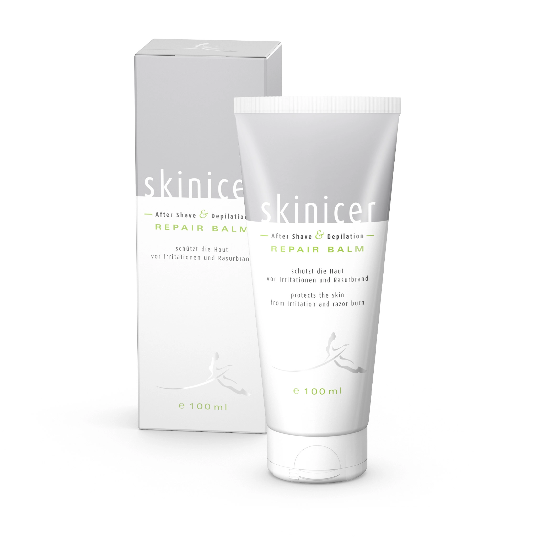 NEU!!! Der neue skinicer After Shave & Depilation®Repair Balm beugt mit Hilfe seines patentierten Mikroalgenwirkstoffes Spiralin® den möglichen Irritationen nach der Rasur oder Epilation vor. Durch seine antibakteriellen und hautberuhigenden Eigenschaften schützt er vor Rötungen, Entzündungen und Pickeln, die bei der Haarentfernung auftreten können und spendet der gereizten Haut erfrischende Feuchtigkeit. skinicer After Shave & Depilation®Repair Balm sorgt bei Frauen und Männer gleichermaßen für eine glatte, seide Haut.