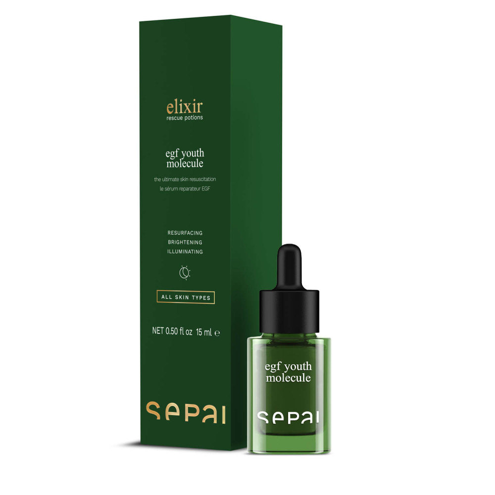 EGF YOUTH MOLECULE von SEPAI ist ein außergewöhnlich wirkstarkes Serum, das die Eigenregeneration Ihrer Haut anregt und sie jugendlich neu und gepflegt erstrahlen läßt. Zur SOS-Anwendung bei Haut, die "aus dem Gleichgewicht" geraten ist oder extremen Bedingungen unterliegt. Es polstert kraftlose Haut auf, bekämpft Pigmentflecken, Schwellungen und alle anderen Anzeichen der Hautalterung. EGF YOUTH MOLECULE ist für alle Hauttypen geeignet, mit Ausnahme von sehr öliger Haut. Vegan. Ohne Parabene, Isothiazolinone, Imidiazolidinyl-Urea, allergene Konservierungsstoffe, BHT, BHA, aggressive Emulgatoren und Tenside, Erdölbasierte Inhaltsstoffe (Paraffine, Petrolatum, PEG), Silicon, Allergene, Lösungsmittel, Zusatzstoffe, potenziell hautreizende Stoffe und andere.