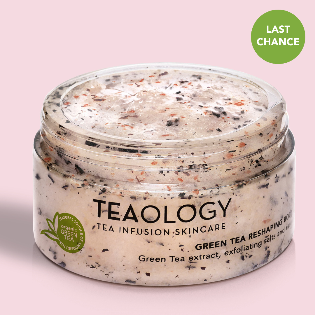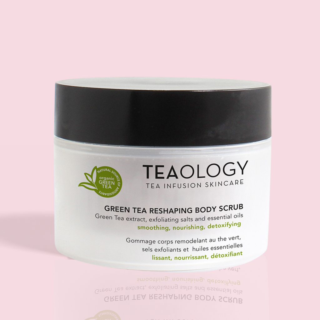 Das Teaology Green Tea Reshaping Body Scrub ist ein unglaubliches Körperpeeling aus einer MIschung aus ganzen Meersalzen, einem Konzentrat aus Teeblättern und ätherischen Ölen. Es glättet die Haut und hilft, überschüssige Flüssigkeiten zu beseitigen, dank der iono-osmotischen Wirkung der Meersalze. Sobald die abgestorbenen Zellen und Unreinheiten entfernt wurden, ist die Haut empfänglicher, so dass die formende und reduzierende Wirkung von grünem Tee sich entfalten kann. Die nährenden, energetisierenden und tonisierenden Öle machen die Haut weich und geschmeidig.