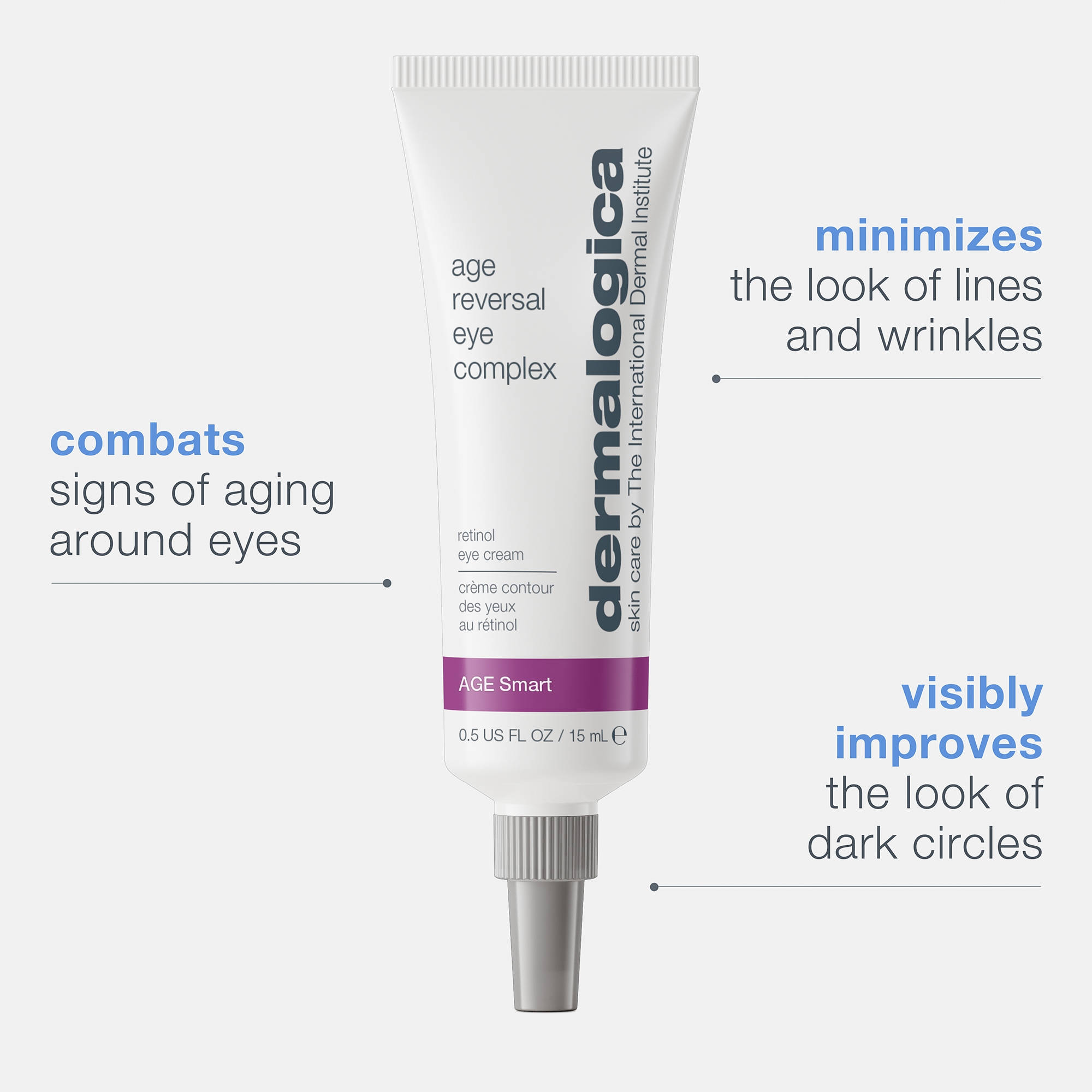 dermalogica Age Reversal Eye Complex ist eine wirkstarke Augenpflege für die Nacht und bekämpft Fältchen und Krähenfüßen, Schwellungen, pigmentbedingte, dunkle Augenringe und Empfindlichkeit der Augenpartie durch Feuchtigkeitsmangel. Die Mikroverkapselung der exklusiven Wirkstoffe erleichtert das Eindringen in die tiefen Hautschichten. Retinol mindert die Faltentiefe und minimiert Auswirkungen der biologischen und lichtbedingten Hautalterung. Die Haut wird geglättet, gestärkt und gegen weitere Schäden geschützt. Age Reversal Eye Complex ist vegan, frei von Gluten, Mikroplastik, Lanolin, denaturiertem Alkohol, künstlichen Farb- und Duftstoffen, Parabenen und ohne Tierversuche hergestellt