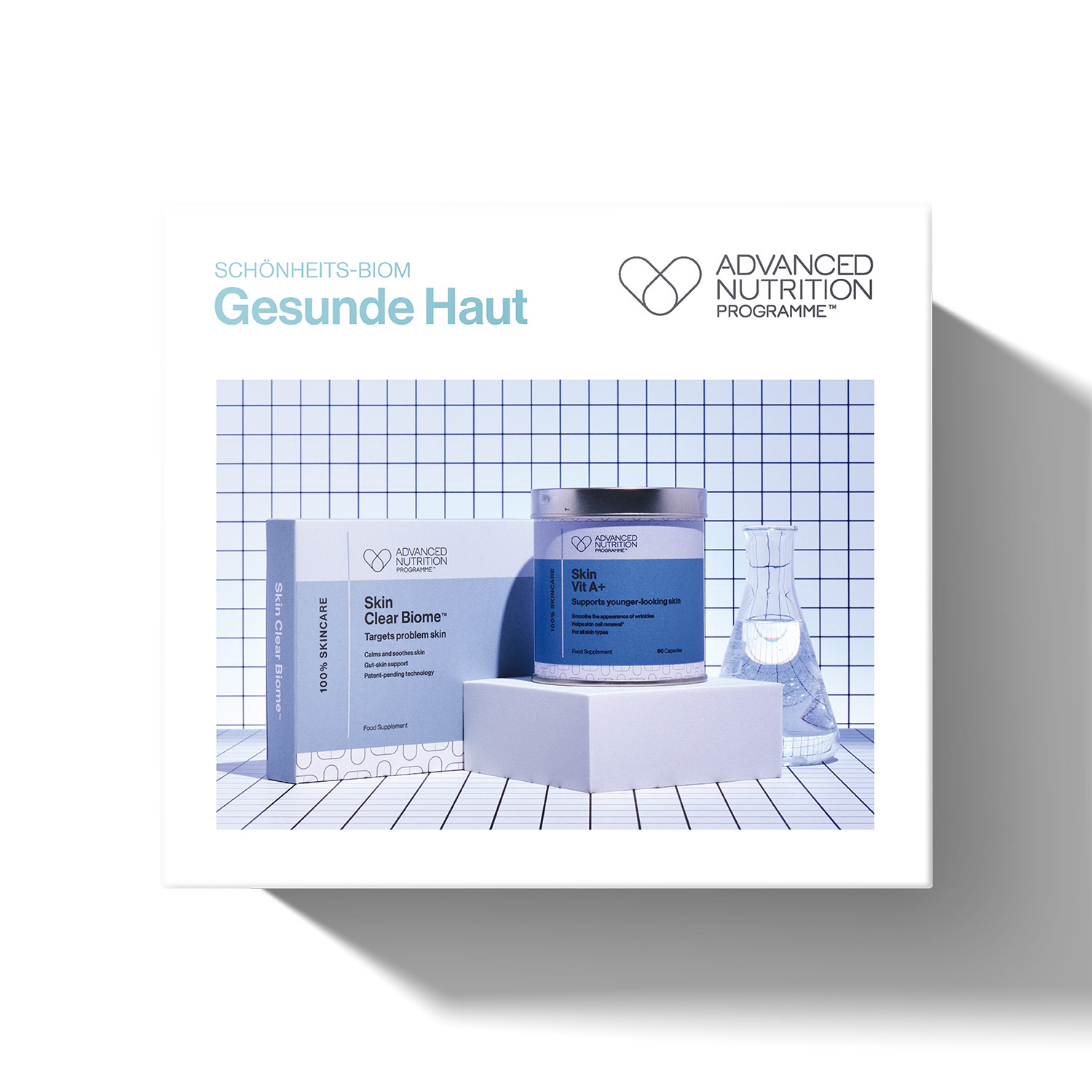 Dieses limitierte Set von Advanced Nutrition Programme mit 12,5% Preisvorteil bietet ein Hautpflegekonzept, bei dem der Darm an erster Stelle steht. Ein unausgewogener Darm kann die Gesundheit der Haut beeinträchtigen. Beginne Deine Reise zu einer gesunden Haut von innen nach außen mit Skin Vit A+ und Skin Clear Biome™. Mit wissenschaftlich fundierten Nährstoffen und darmfreundlichen Bakterien.