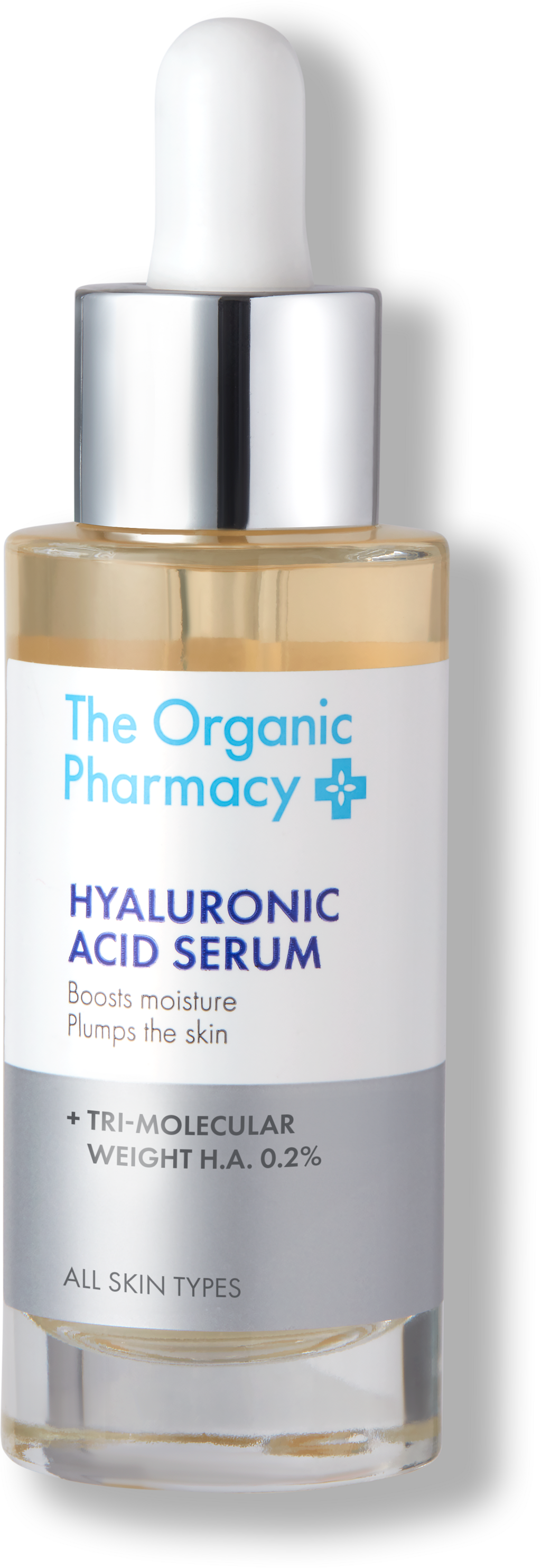 Das Hyaluronic Acid Serum 0,2% von The Organic Pharmacy enthält hochwirksame Hyaluron-Säure mit dreifach Molekulargewicht (nieder, mittel und groß). Es durchfeuchtet die Haut und polstert sie von innen heraus auf. Hyalron-Säure speichert ein Vielfaches seines Eigengewichts an Feuchtigkeit und sorgt so für eine pralleren, festen und glatteren Teint. Hyaluronic Acid Serum 0,2% kann jederzeit allein verwendet werden und lässt sich auch ausgezeichnet mit dem neuen Four Acid Peel 5%, Stabilised Vitamin C Serum oder Retinol Night Serum kombinieren. Alle Produkte von "The Organic Pharmacy" beinhalten ausschließlich biologische Inhaltsstoffe höchster Qualität und sind frei von allen synthetischen Schadstoffen, Fair Trade und ohne Tierversuche hergestellt.