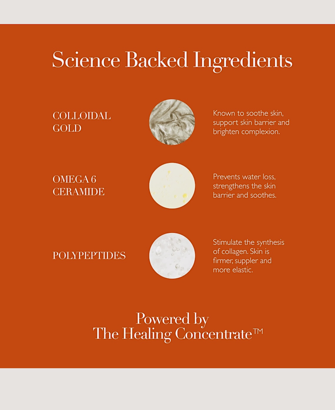 Aqua (Hungarian Thermal Water), Caprylic/Capric Triglyceride, Glycerin, Cera Alba (Beeswax), Squalane, Butyrospermum Parkii (Shea Butter), Polyglyceryl-3 Polyricinoleate, Lanolin, Sorbitan Sesquioleate, Prunus, Armeniaca (Apricot) Kernel Oil, Sucrose Distearate, Phenoxyethanol, Magnesium Sulphate, Saccharomyces, (Hungarian Thermal Water) Ferment Extract, Benzyl Alcohol, Safflower Glyceride/Palm Oil Aminopropanediol Esters, Parfum (Fragrance), Pyrus Malus (Apple) Fruit Extract, Polyglyceryl-3 Ricinoleate, Ascorbyl Tetraisopalmitate, Prunus Domestica (Plum) Seed Extract, Tocopherol, Ethylhexylglycerin, Disodium EDTA, Dehydroacetic Acid, Colloidal Gold, Chlorella Vulgaris/Lupinus Albus Protein Ferment, Pectin, Leuconostoc/Radish Root Ferment Filtrate, Palmitoyl Tripeptide-5, Caprooyl Tetrapeptide-3, Dextran, Geraniol, Citronellol, Linalool.
