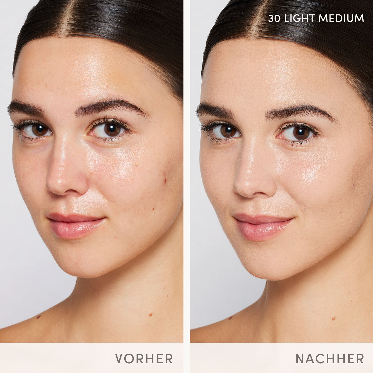 Merkmale & Vorteile: + Natürlicher Glow und aufbaubare Deckkraft, so leicht, dass sie sich anfühlt wie die eigeneHaut. + Nahtloses Finish–verschmilzt mit der Haut für einen ebenmäßigen Look. + 3-in-1-Formel–Foundation, Hautpflege & SonnenschutzSPF30 in einem. + Langanhaltende Farbtöne–bleiben authentisch und verändern sich nicht im Laufe des Tages. + Verfeinert das Hautbild–kaschiert feine Linien und Unebenheiten. + Empfohlen von der Skin Cancer Foundation als wirksamer Breitband-Sonnenschutz. + Unterstützt die Hautfeuchtigkeit und hilft,die Hautqualität zu verbessern. + Dermatologisch getestet & nicht komedogen–ideal für alle Hauttypen, besonders trockene und reife Haut.