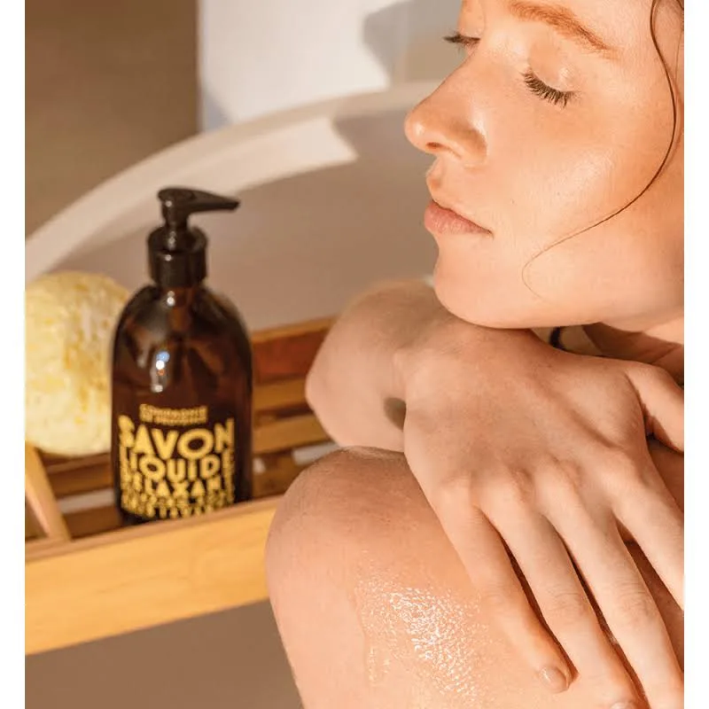 Diese Flüssigseife mit einer reinigenden Basis aus Kokosnuss- und Sonnenblumenöl, die nach einem traditionellen Verfahren in einem Kessel verseift wird, hat eine luxuriöse Geltextur, die Hände und Körper sanft reinigt. Angereichert mit außergewöhnlichen pflanzlichen Ölen aus der Provence, vermittelt sie ein Gefühl von Komfort und Entspannung dank einer Mischung aus ätherischen Ölen aus Lavendel und Sternanis, die beruhigende Eigenschaften haben. Ohne Farbstoffe und tierische Fette. Entspannender Duft, kreiert in Grasse. Tipps zum Wohlfühlen Händewaschen ist eine der wichtigsten Maßnahmen zur Pflege Ihrer Haut. Wenn Sie Ihre Hände mit dieser Seife waschen, halten Sie sie einige Sekunden lang zusammen und halten Sie sie unter Ihre Nase. Dann atmen Sie den Duft ein - und seine Wirkung.