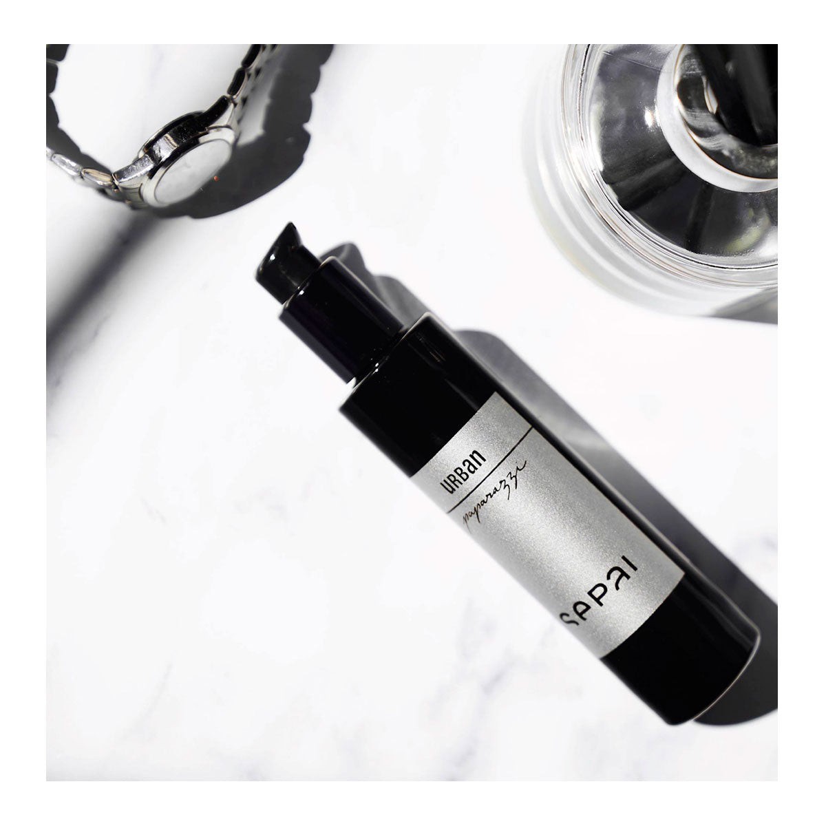 PAPARAZZI von SEPAI ist eine leichte, antioxidative 24h Feuchtigkeitspflege mit schützenden, zellreparierenden Wirkstoffen. Die lichtreflektierenden Pigmente lassen den Teint sofort strahlen und wirken wie ein Weichzeichner. Hier als Reisegröße.